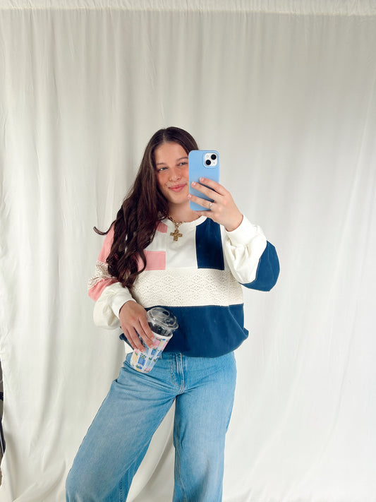 SWEET MAGNOLIA COLORBLOCK LACE PULLOVER