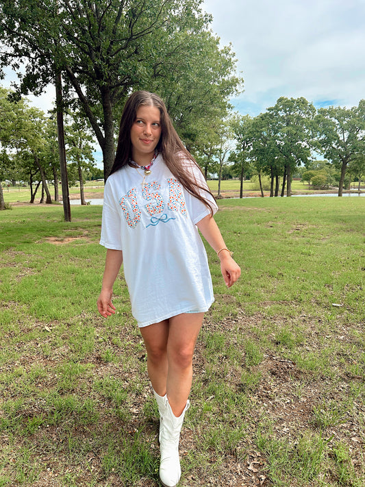 USA FLORAL BOW TEE