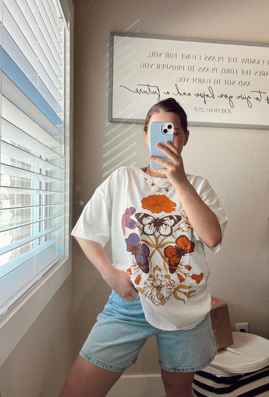 Butterfly Vintage-Wash Oversized Tee