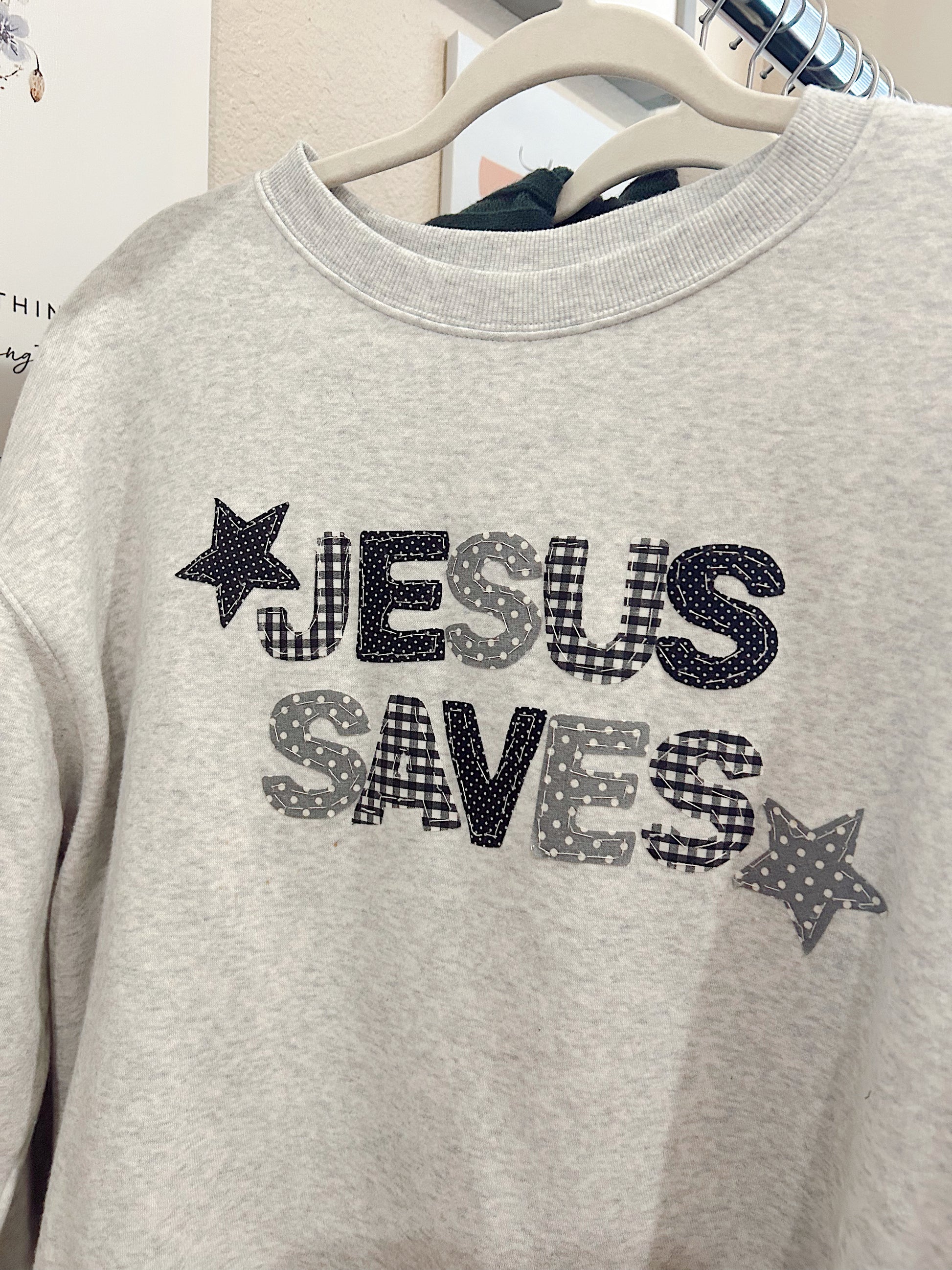 This Jesus saves patchwork sweatshirt is thoughtfully hand-stitched, making each piece truly one of a kind. Designed to be worn boldly and faithfully, it’s a meaningful reminder of the truth we carry every day.